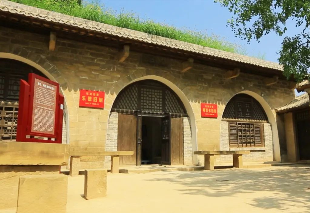 朱德旧居,由一排3孔石窑和10间瓦房组成。左起第一孔窑洞是办公室,第二孔是会客室,第三孔是寝室。周恩来由国统区谈判回到延安时也在此居住。
