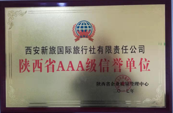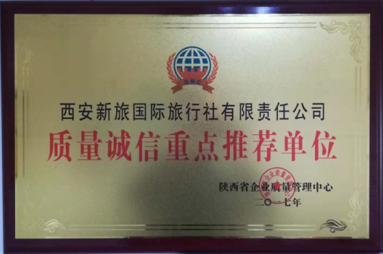 4、口碑良好,信誉保证。西安新旅国际旅行社是中国旅行社协会会员单位,陕西省《质量诚信重点推荐单位》和《陕西省AAA级信誉单位》,西安市旅游局推荐的《旅行社责任保险全国统保示范项目参保单位》。在国内外游客中和旅游业中有良好的认同感和好评,在国际上建立了良好的口碑和信誉!