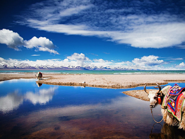 早餐后乘车延青藏线西行转北赴西藏三大圣湖之一的【纳木措】(游览时间1小时)——海拔4718米,它是世界上海拔最高的咸水湖,它位于唐古拉山脉西南脚下,有如镶嵌在藏北草原上一颗无暇的翡翠。湖的尽头是白雪皑皑连锦的雪山,和蓝天下茵茵草地,朵朵羊群以及帐篷里飘出的袅袅钦烟,象是到了远离城市喧器的仙境。之后返回拉萨。