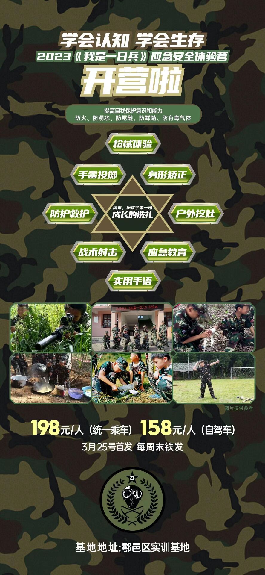 让孩子当一天好兵,重新认识世界,发现不一样的自己。培养雷厉风行的作风,增强自身能力,学会保护自己,树立强大信念,做一个智勇双全的中华少年郎。
